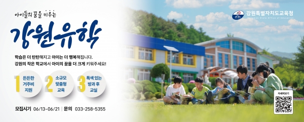 [충청뉴스큐] 강원특별자치도교육청은 6월 13일부터 6월 21일까지 9일간 2024년 2학기 강원특별자치도교육청 농어촌유학생을 모집한다.
