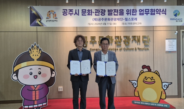 [충청뉴스큐] 공주문화관광재단과 힐스포레는 공주시의 문화·관광 발전을 위해 11일 아트센터 고마에서 업무협약을 체결했다고 밝혔다.