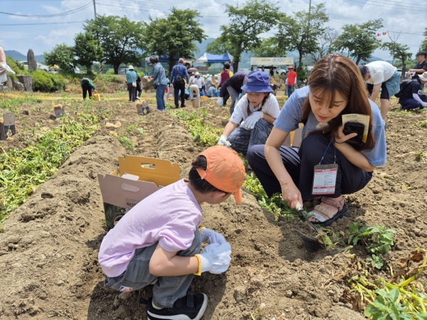 15일 진행된 감자축제의 꽃인 감자캐기 체험행사는 지난해 200여명의 2배가 넘는 450명이 사전 예약을 조기 완료하며 인기를 실감하게 했다.
