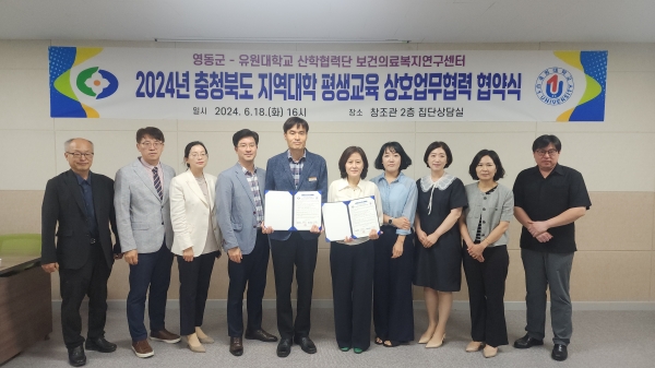 [충청뉴스큐] 충북 영동군과 유원대 산하협력단은 지난 18일 유원대학교 영동캠퍼스에서 교육발전특구 선정을 위한 ‘지역대학 평생교육 상호업무 협약’을 체결했다.
