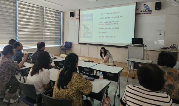 교육은 서산시 보건소에 추진하는 ‘찾아가는 심폐소생술 교육’과 연계해, 전문자격을 갖춘 응급구조사의 지도로 실제 상황에서 침착하게 대응할 수 있게 실습 위주로 진행됐다.