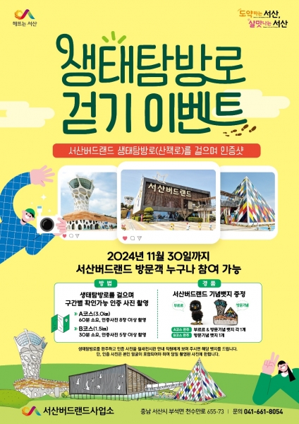 [충청뉴스큐] 충남 서산시는 ‘서산버드랜드 생태탐방로 걷기 이벤트’의 호응에 힘입어 해당 이벤트를 11월 30일까지 연장해 추진한다고 5일 밝혔다.
