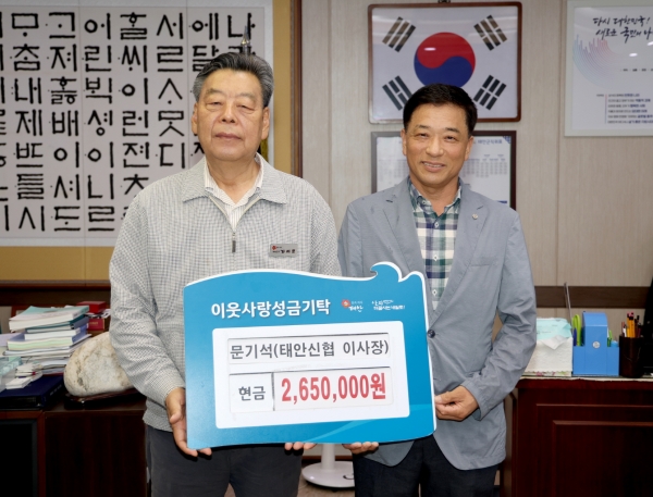 [충청뉴스큐] 태안군의 ‘기부천사’ 문기석 씨가 성금 기탁을 통해 이웃사랑의 마음을 다시 한 번 전했다.