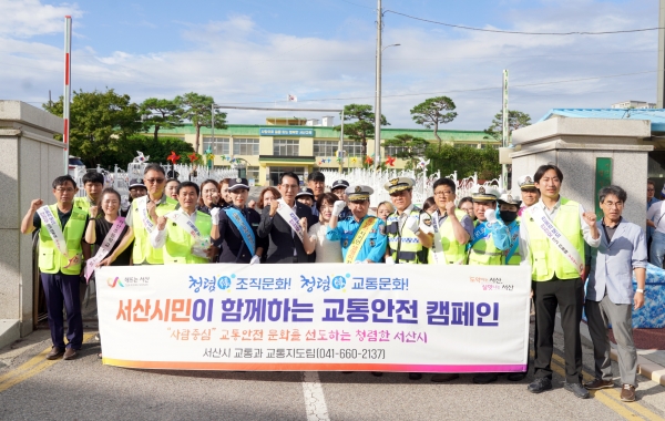 [충청뉴스큐] 충남 서산시는 16일 서산초등학교 일원에서 등굣길 어린이와 통행 운전자를 대상으로 민·관·경 합동 교통안전 캠페인을 진행했다고 밝혔다.