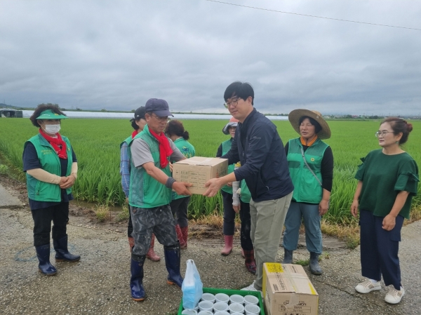[충청뉴스큐] 한국지체장애인협회 충남협회 논산시지회가 논산시 수해 복구를 위해 나선 자원봉사자들을 위해 도시락을 전달하며 응원과 감사의 인사를 전했다.