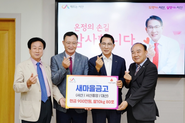 시는 이날 시청 시장실에서 이완섭 서산시장, 김호종 서산새마을금고 이사장, 가제현 서산중앙새마을금고 이사장, 김문경 대산새마을금고 이사장 등이 참석한 가운데 기탁식을 개최했다.