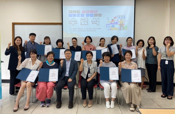 [충청뉴스큐] 공주시는 지난 24일 공주대학교 옥룡캠퍼스 평생교육원에서 직업교육훈련 ‘자카드 섬유패션 협동조합 창업과정’ 수료식을 진행했다.