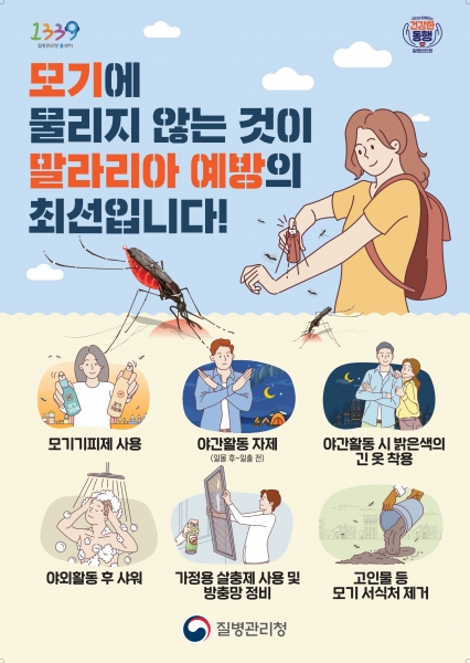 박경운 감염병관리과장은 “말라리아를 예방하기 위해 모기 기피제 사용하기, 야간활동 자제하기, 야간활동 시 밝은색 옷 착용하기 등의 예방수칙이 중요하다”며 “모기에 물린 후 발열, 오한 등과 같은 증상이 발생하는 경우 즉시 보건소에 방문해 검사받을 것”을 당부했다.