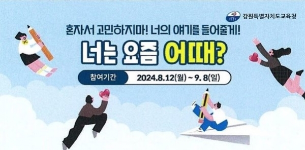 [충청뉴스큐] 강원특별자치도교육청은 학생 자해 및 자살을 예방하고 생명 존중 문화를 조성하기 위해 12일부터 9월 8일까지 ‘청소년 생명존중 공익캠페인’을 진행한다.