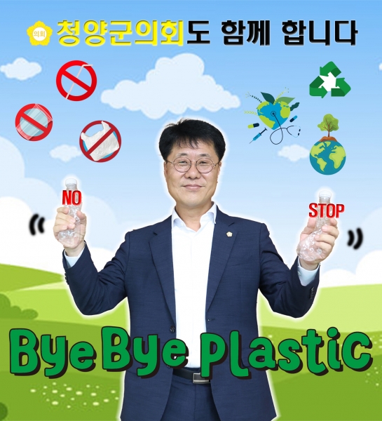 [충청뉴스큐] 청양군의회 김기준 의장은 12일 플라스틱 사용을 줄이기 위한 의지를 다짐하며 ‘바이바이 플라스틱 챌린지’ 캠페인에 동참했다.