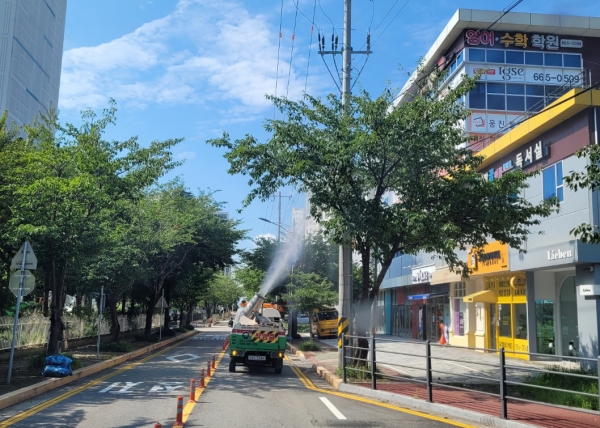 시는 6월부터 상시 방제체계를 구축하고 방제 차량 2대를 투입해 가로수와 공원 식재 수목을 대상으로 약제를 살포하는 등 방제 작업을 추진해 왔다.