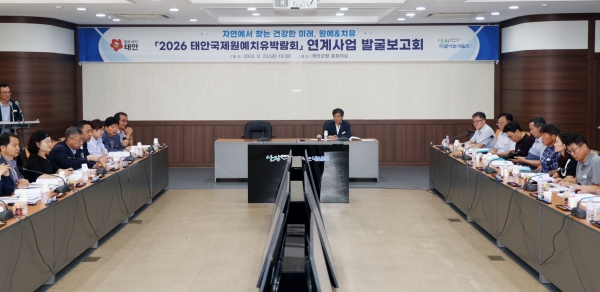 군은 지난 23일 군청 중회의실에서 이주영 부군수와 부서장 등 40여명이 참석한 가운데 ‘2026 태안국제원예치유박람회 연계사업 발굴 보고회’를 갖고 부서별 발굴 사업을 점검했다.