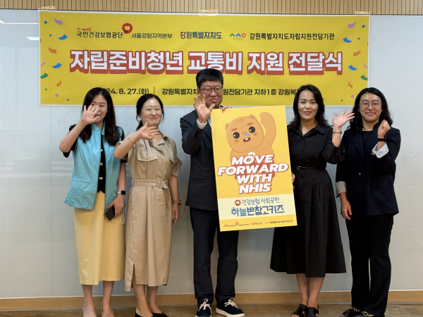 [충청뉴스큐] 국민건강보험공단 서울강원지역본부는 8월 27일 오전 10시, 강원특별자치도자립지원전담기관에 자립준비청년들을 위한 교통카드 100매를 전달했다.