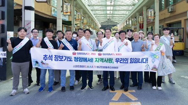 [충청뉴스큐] 청양군은 추석 명절을 맞아 지난 10, 12일 장날 청양전통시장, 정산전통시장에서 착한소비 촉진을 위한 전통시장 장보기 행사와 물가안정 캠페인을 펼쳤다고 밝혔다.