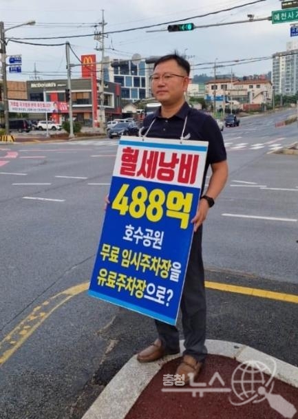 이번 논란은 새마을남녀지도자협의회에서 읍·면·동 회장들에게 시민의쉼터·서산의명소 '서산중앙호수공원 초록광장·공영주차장 조속한 조성을 응원합니다'란 홍보 내용의 공유 및 현수막 제작을 요청하는 내용이 SNS 통해 공개되면서 급물살을 탔다.
