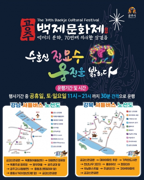 [충청뉴스큐] 공주시가 오는 28일 개막하는 ‘제70회 백제문화제’ 기간 관람객들의 이동 편의를 위해 특별 교통 대책을 마련해 시행한다고 26일 밝혔다.