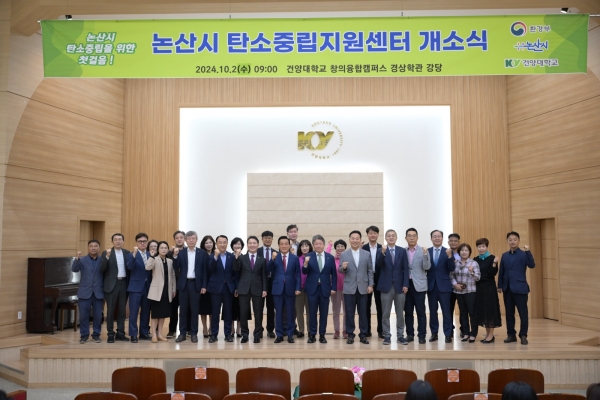 논산시는 2일 건양대학교 창의융합캠퍼스 경상학관 강당에서 ‘논산시 탄소중립지원센터 개소식’을 갖고 탄소중립도시로의 도약을 다짐했다.