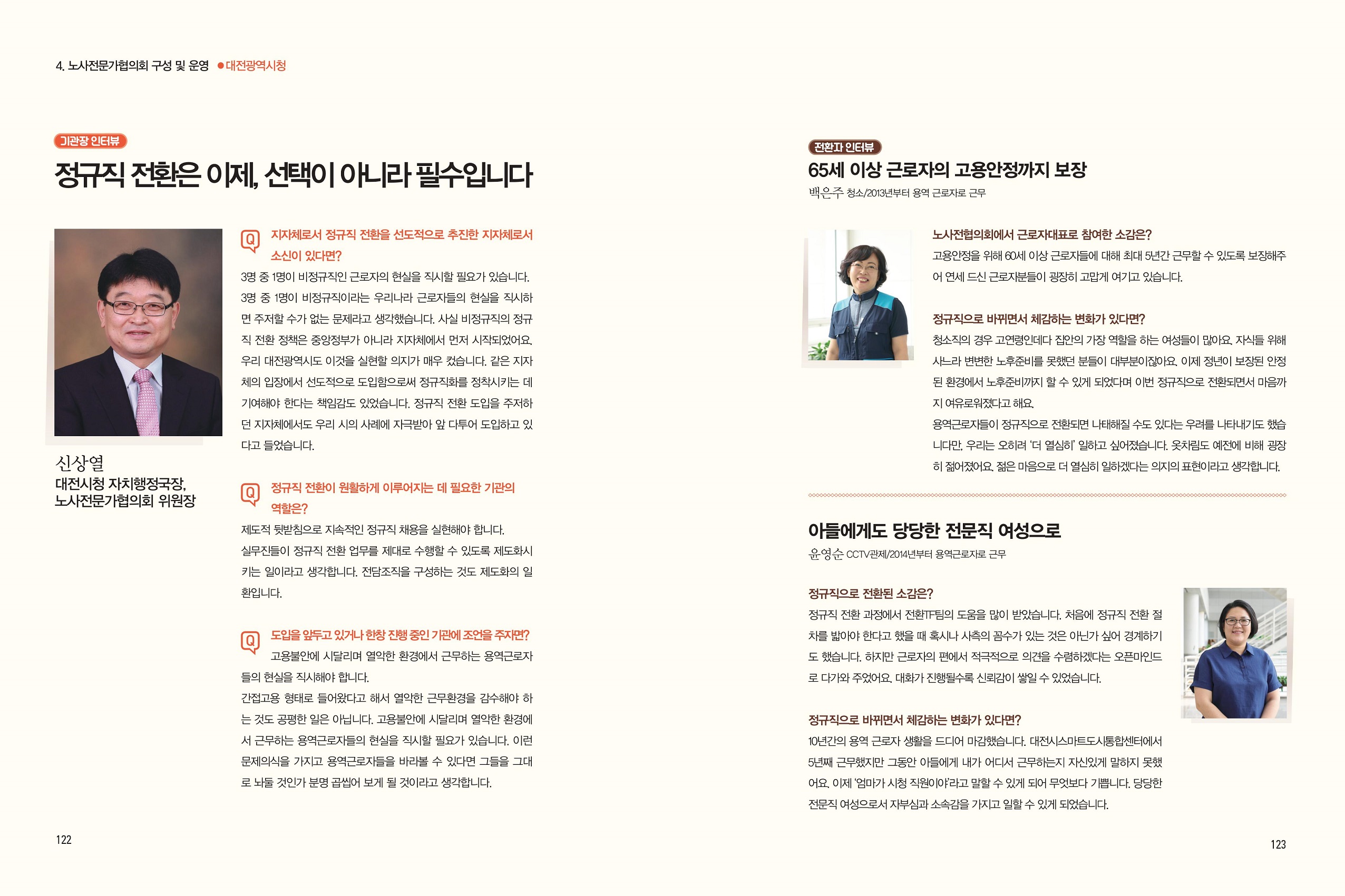 대전시 신상열 자치행정국장은 “근로자 3명 중 1명이 비정규직인 현실을 직시할 때, 정규직전환은 지체할 수 없는 문제였다”며 “전환 이후 인사시스템을 구축, 노사협력 등 후속조치에도 만전을 기하여 이번 전환정책이 근로자들의 고용안정 뿐 아니라 시민들을 위한 공공서비스 수준의 향상까지 이어지도록 하겠다”고 말했다.