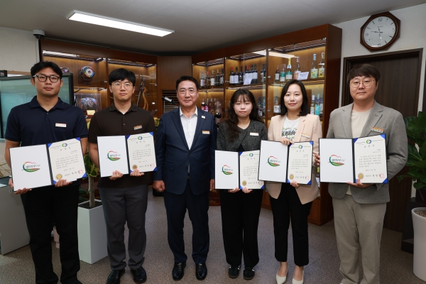 수상자는 스마트농업과 오지원 주무관, 과수축산과 김호영 주무관, 보건소 김세화 주무관, 상수도사업소 유지연 주무관, 용산면 오강현 주무관이다.