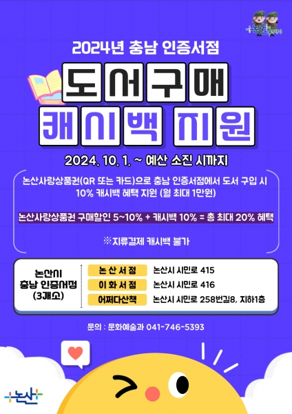 이 사업은 충청남도가 인증한 논산 지역서점에서 논산사랑상품권으로 도서를 구입하면 구매 결제액의 10%를 논산사랑상품권 캐시백으로 지원하는 사업이다.