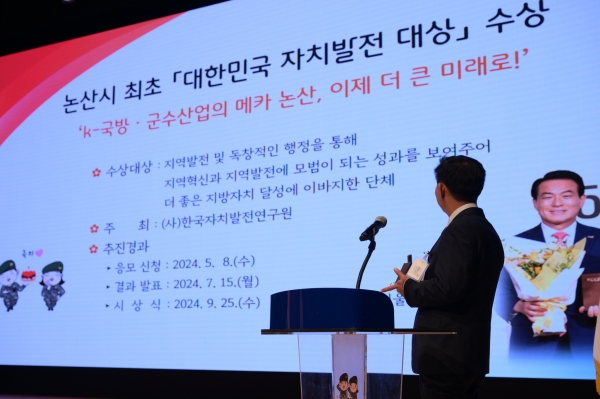 논산시가 이 상을 수상하게 된 데는 백성현 논산시장의 취임 이후 ‘진심’, ‘적극’행정을 바탕으로 과감한 혁신과 도전을 거듭하며 논산에 새로운 변화의 바람을 불러일으키고 지속가능한 논산으로 가는 길을 열었기 때문으로 평가받고 있다.