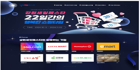 강원세일페스타는 강원특별자치도의 대표 쇼핑 축제로 강원더몰을 비롯한 18개 시군몰, 강원곳간, 제휴 쇼핑몰 등에서 온라인 및 오프라인 할인 이벤트가 진행된다.