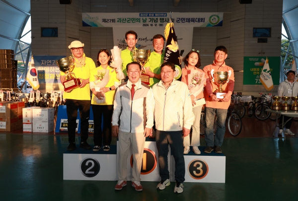 이번 행사는 제27회 괴산군민의 날 기념행사와 제2회 괴산군민체육대회를 함께 개최해 그 의미를 더했으며 11개 읍·면 선수단과 군민 등 1,500여명이 참여해 화합과 소통의 장을 열었다.