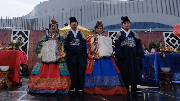 전통혼례를 올린 한경엽·손복순, 권숙진·이수남부부는 “평생 기억에 남을 소중한 순간을 전통혼례로 다시 한 번 맞이하게 돼 매우 기쁘다”며 “더욱 건강 잘 챙기면서 서로 사랑하며 살겠다”고 말했다.
