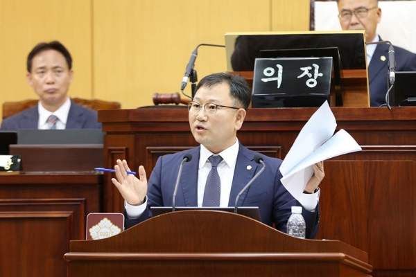 [충청뉴스큐] 서산시의회 문수기 의원은 21일 열린 제299회 서산시의회 임시회 제2차 본회의에서 총 6개의 시정질문을 했다.