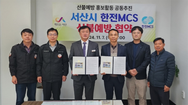 [충청뉴스큐] 충남 서산시는 7일 한전MCS㈜ 서산지점과 시청 환경녹지국장실에서 ‘산불 예방 업무협약’을 체결했다고 밝혔다.