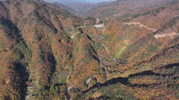 [충청뉴스큐] 가을의 절정, 충북 영동군의 도마령이 늦가을의 정취로 짙게 물들었다.