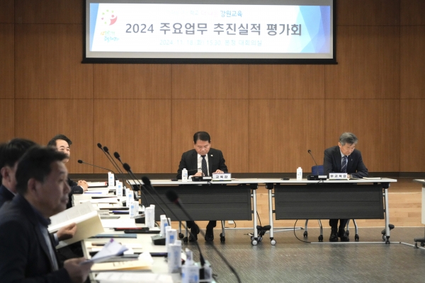 [충청뉴스큐] 강원특별자치도교육청은 11월 18일 오후 3시 30분 도교육청 2층 대회의실에서 신경호 교육감, 부교육감, 국장, 과장, 팀장이 참석한 가운데 ‘2024 주요업무 추진실적 평가회’를 개최했다.