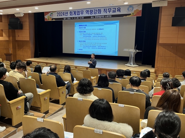 한국지방재정공제회 회계실무 전문 강사가 진행한 이날 교육은 회계의 원칙과 절차, 세출예산 집행기준, 지출사례 등 현안 업무에 바로 활용할 수 있는 내용으로 실무능력 강화를 목적으로 진행했다.