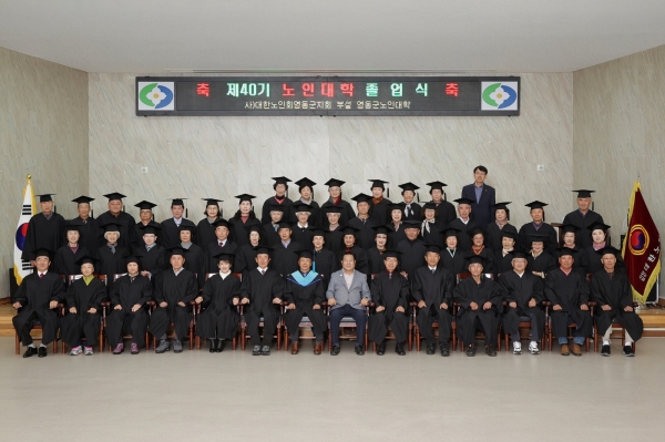 [충청뉴스큐] 충북 영동군 노인대학은 지난 27일 노인복지관 대회의실에서 제40기 졸업식을 개최하고 총 57명의 졸업생을 배출했다.