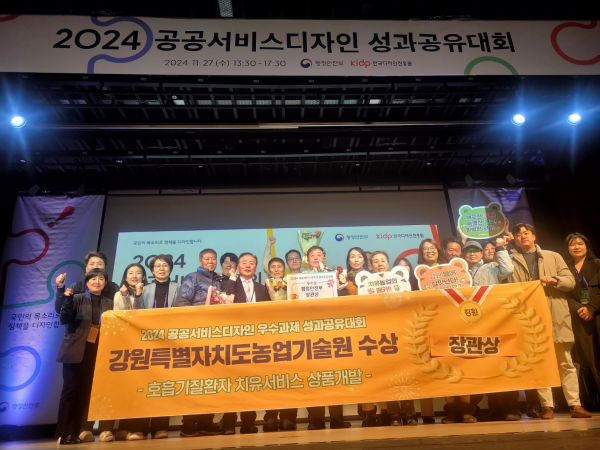 [충청뉴스큐] 강원특별자치도는 11월 27일 정부세종청사에서 열린 행정안전부 주관 ‘2024 공공서비스디자인 우수과제 성과공유대회’에서 우수기관으로 선정되어 우수상을 수상했다고 밝혔다.