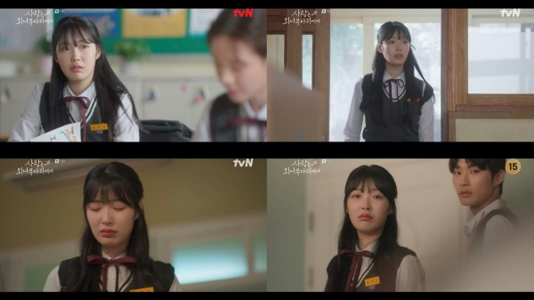 지난 8일 방송된 tvN 토일드라마 ‘사랑은 외나무다리에서’ 6화에서는 친한 친구 고해수와 심화반 문제를 두고 갈등을 빚는 김유미의 모습이 그려졌다.