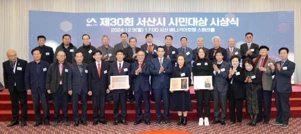 서산시는 9일 베니키아 호텔에서 제30회 서산시 시민대상 시상식을 개최하고 수상자로 선정된 김선호 씨와 김인숙 씨, 양희영 씨에게 상패를 전달했다고 밝혔다.