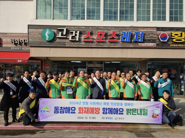 화재, 산불 등 각종 재난사고 예방을 위한 민관 합동 캠페인 실시를 통해 군민들의 안전의식을 높이고 안전한 청양군을 만들기 위해 마련된 이번 캠페인에는 윤여권 청양부군수를 비롯해, 청양소방서 청양군지역자율방재단, 도 사회재난과, 도 지역자율방재단엽합회 등 30여명이 참여했다.