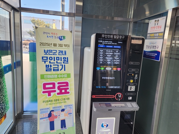 [충청뉴스큐] 보은군은 군민들의 민원 편의를 위해 무인민원발급기에서 발급하는 제증명 수수료를 전면 무료화한다고 6일 밝혔다.