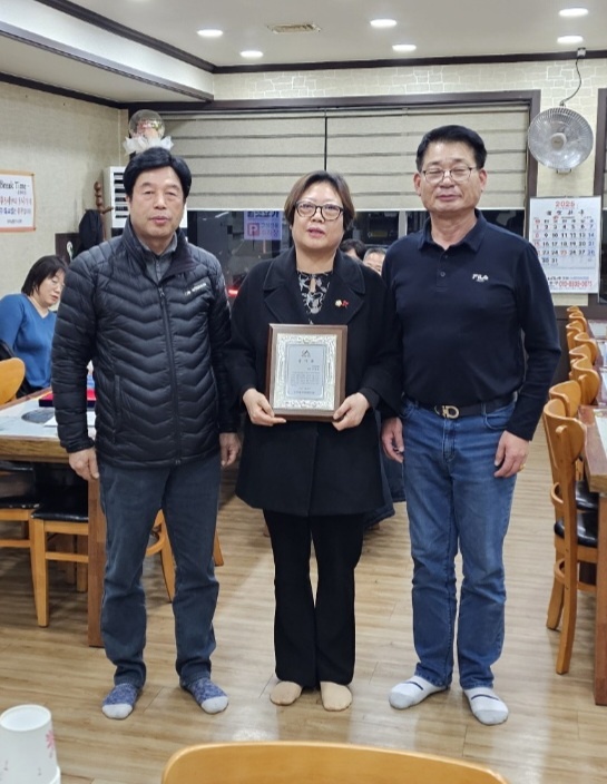 [충청뉴스큐] 서산시의회 가선숙 의원은 지난 28일 서산시 동문2동 주민들로부터 지역발전에 헌신적인 노력과 이바지한 공로를 인정받아 감사패를 수여받았다.