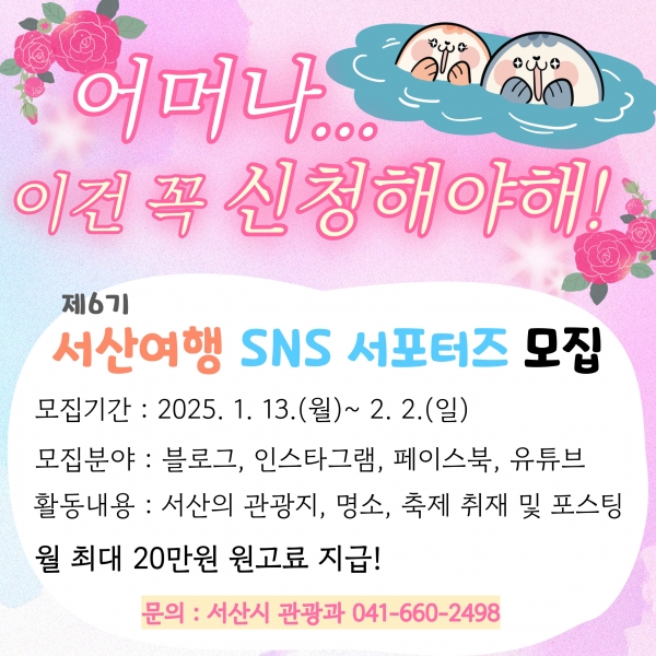 [충청뉴스큐] 충남 서산시는 ‘제6기 서산여행 SNS 서포터즈’를 2월 2일까지 모집하고 있다고 16일 밝혔다.