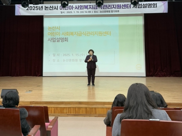 [충청뉴스큐] 논산시는 지난 15일 오후 2시 논산문화원 1층에서 어린이집 원장 및 사회복지시설장을 대상으로 ‘2025년 논산시 어린이·사회복지급식관리지원센터’ 사업설명회를 개최했다.