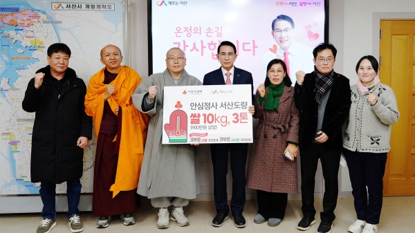 [충청뉴스큐] 충남 서산시는 20일 안심정사 서산도량이 설 명절을 맞아 어려운 이웃을 위해 쌀 3톤을 기탁했다고 밝혔다.