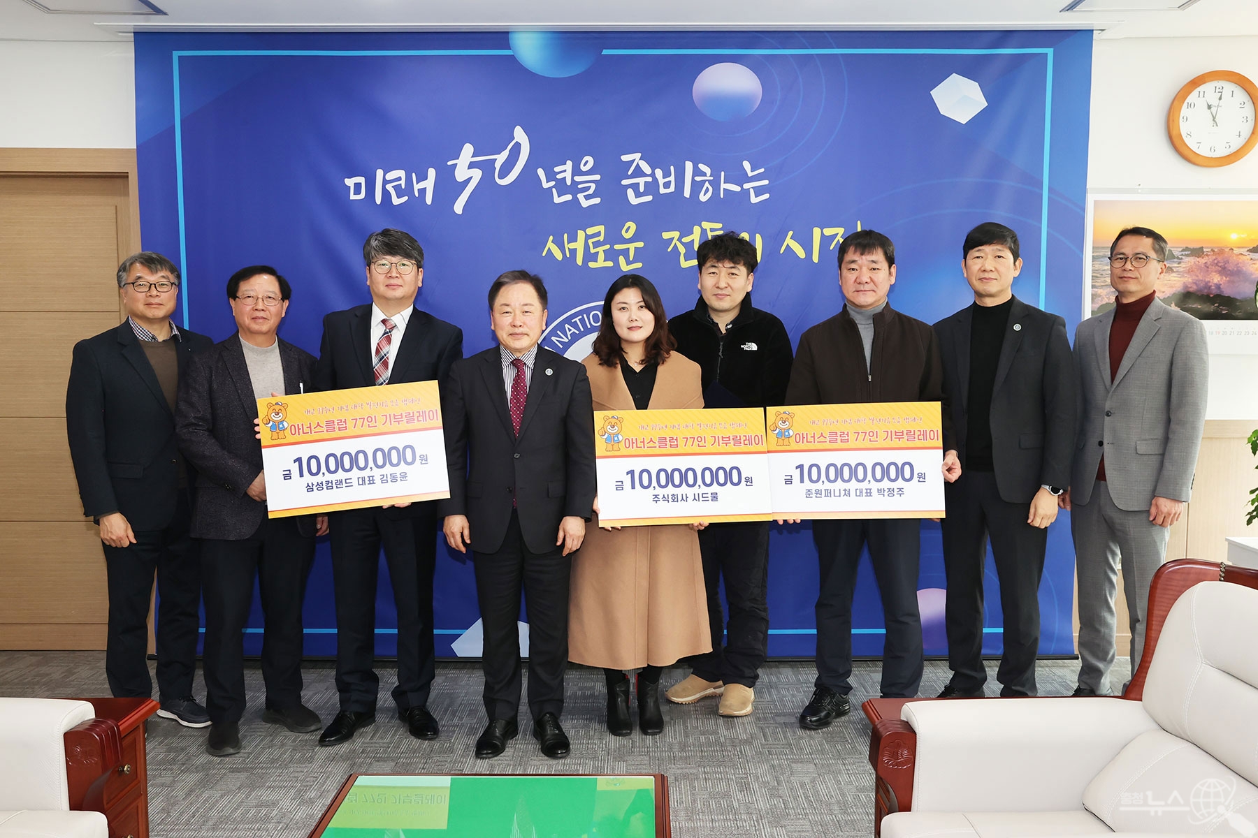 국립공주대학교(총장 임경호)는 21일 접견실에서 아너스클럽 기부자들이 임경호 총장에게 대학 발전을 위해 써달라며 발전기금을 기탁했다고 밝혔다.