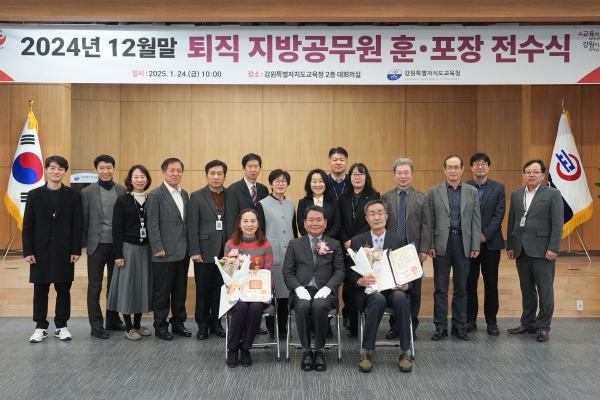 [충청뉴스큐] 강원특별자치도교육청은 24일 도교육청 2층 대회의실에서 퇴직 지방공무원 훈·포장 전수식을 개최했다.