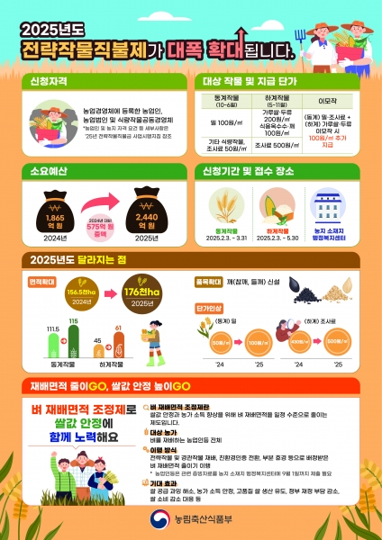전략작물직불금은 동계작물과 하계작물로 나뉘어 지급된다.