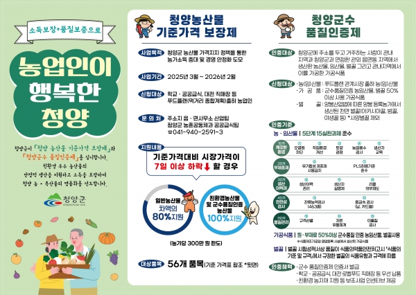 2025년에는 사업계획의 주요 사항 중 하나로 청양군은 농산물 가격이 불안정한 시기에도 농가 소득을 안정적으로 보장하기 위해 2023년부터 시행 중인 시기별 기준가격 제도를 유지하기로 결정했다.