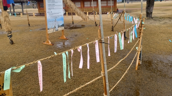 해미읍성 잔디밭에서는 소원지를 볏가릿대에 매달아 한 해 소망을 기원할 수 있다.