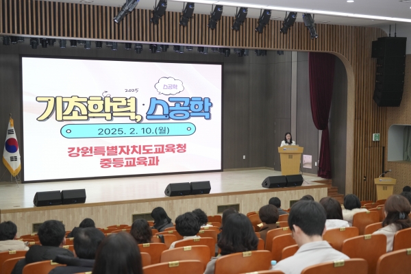 [충청뉴스큐] 강원특별자치도교육청은 10일 강원특별자치도교육청 6층 대강당에서 ‘2025학년도 중등 기초학력 보장 지원 및 스공학 사업 설명회’를 개최했다.