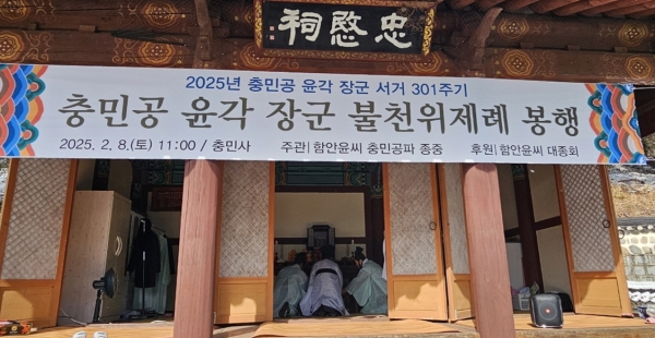 [충청뉴스큐] 공주시 의당면은 지난 주말 함안윤씨 충민공파 종중 주관으로 월곡리 소재 충민사에서 윤각 장군 서거 301주기를 맞아 불천위 제례를 봉행했다고 밝혔다.